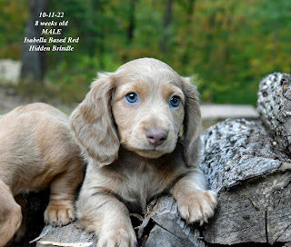 Smooth Hair Female - SOLD Chocolate based red dapple & brindle (hidden brindle) and carries longhair, tan points, chocolate/tan, cream, dilute & piebald.